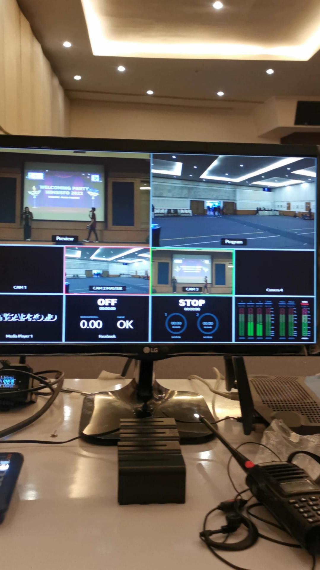 Setup: Similar to the HIMSISFO 2022 event, utilizing NDI NewTek, VMIX, Wireless SDI connections, Blackmagic Atem Mini, Timecode, and Audio Over IP.